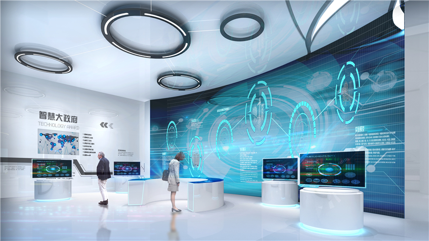 邳州市大數(shù)據(jù)中心展廳,位于邳州市新城區(qū)行政中心東側(cè),以“打造智慧城市新標桿,呈現(xiàn)強富美高新邳州”為布展主題,共分為序廳、時光隧道、智慧政府、互聯(lián)網(wǎng)+應用、大數(shù)據(jù)時代、游戲互動區(qū)、未來環(huán)幕影院六大板塊,是一個極具現(xiàn)代感、科技感、時代感的智慧化展廳。